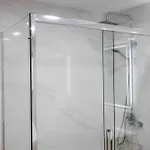 Including a flat screen TV, this apartment is furnished with a wardrobe and conveniences like an air conditioner. The property is equipped with a bathroom that features hair dryers, a shower cap, and bath sheets. A separate toilet and a shower can also be found.